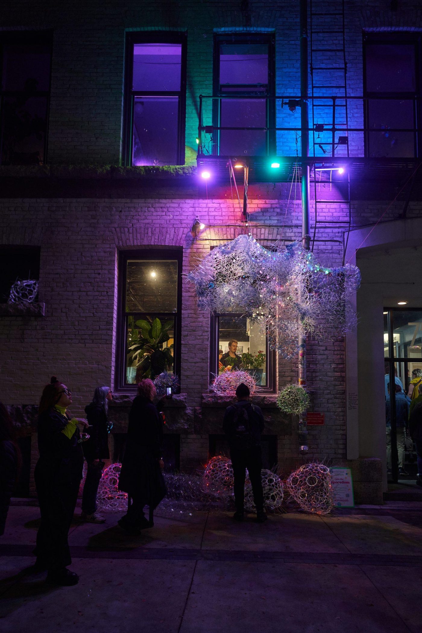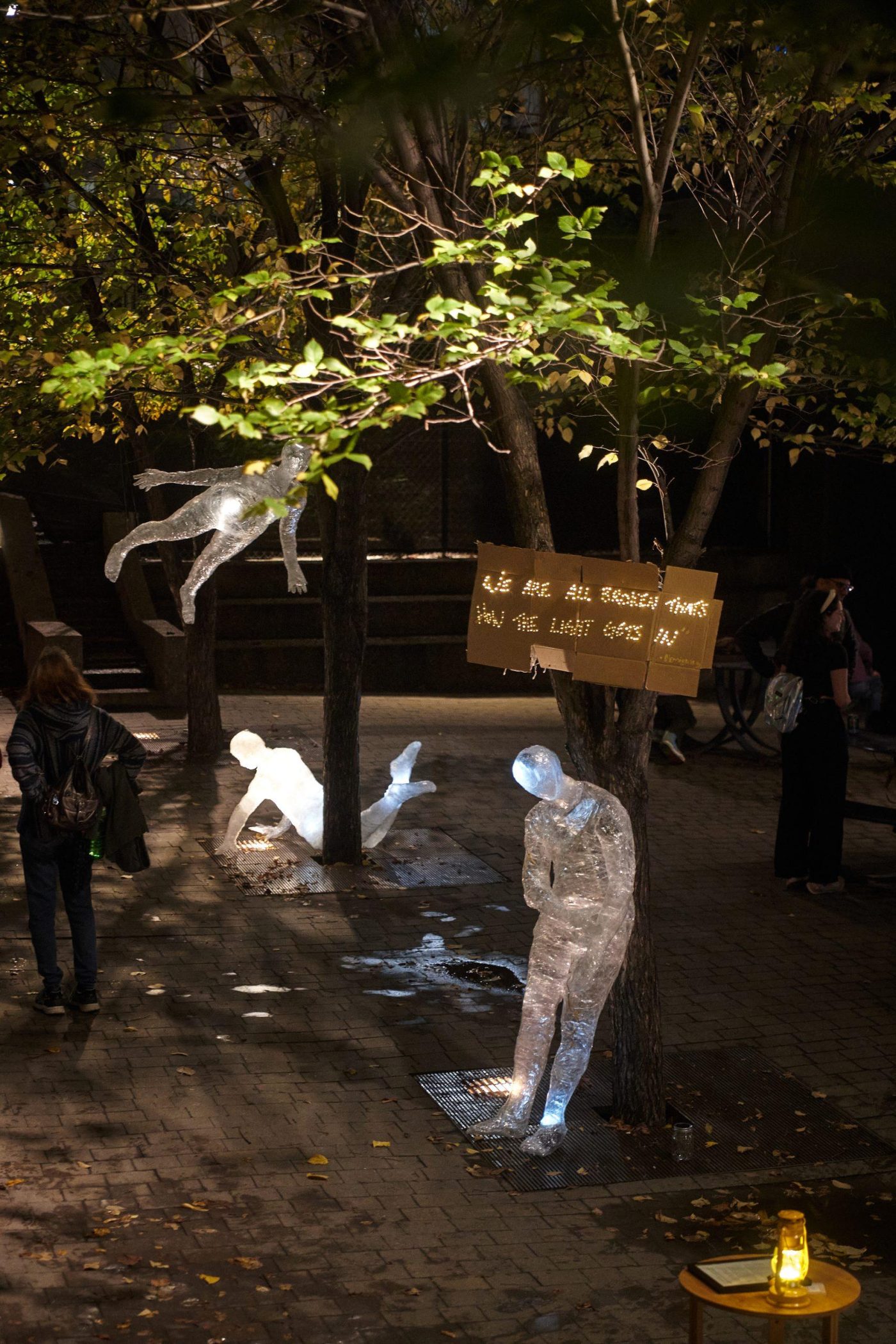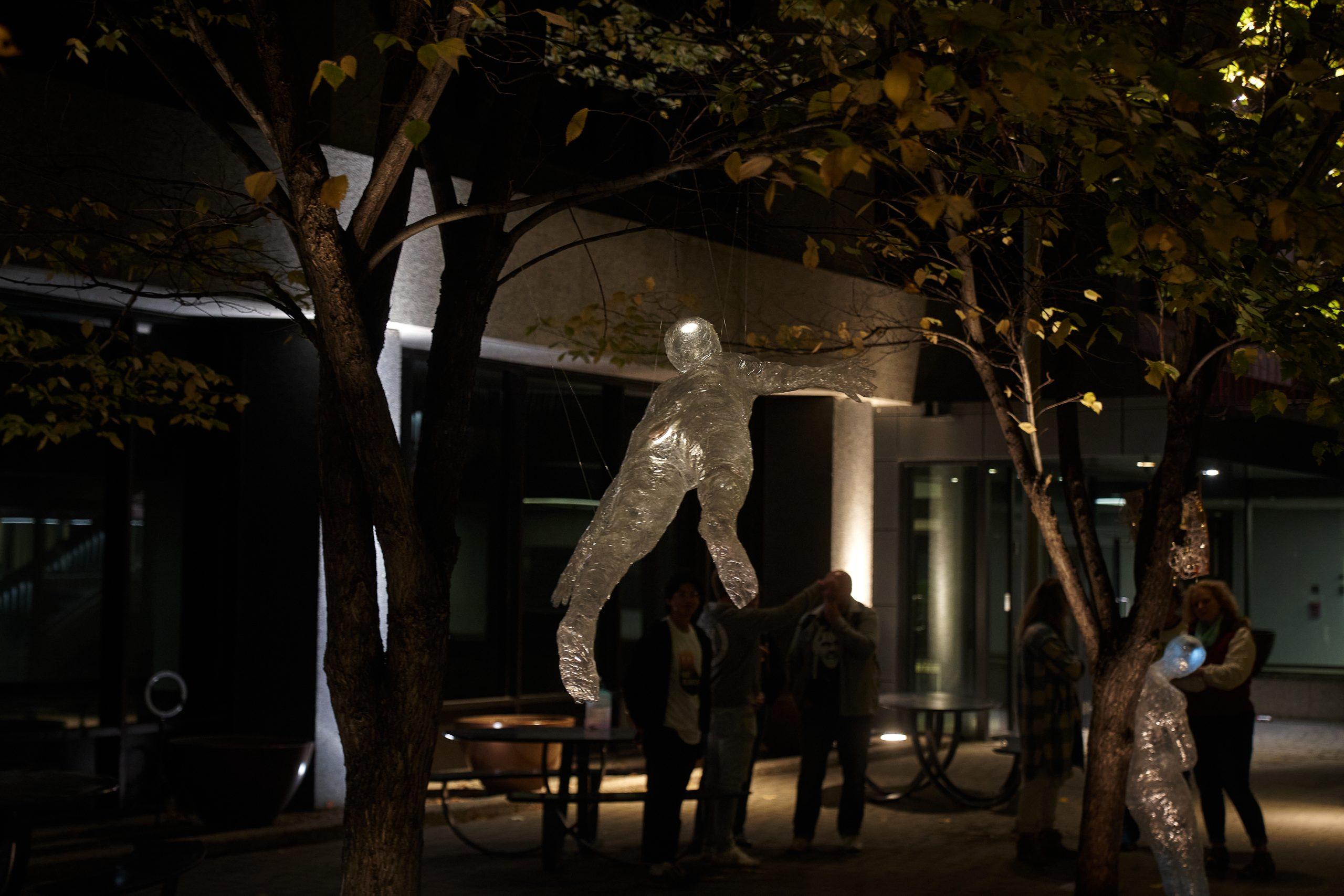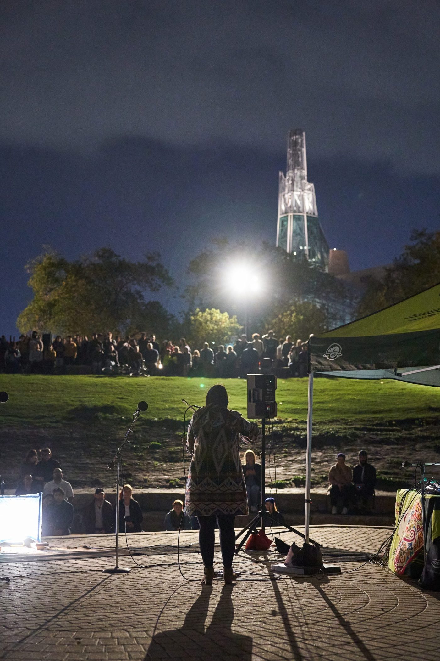 The Kookums Lounge is interactive space of light in a very familiar structure to the landscape since before Winnipeg was Winnipeg – the Tipi. Traditionally, the tipi represents a women’s skirt, sheltering community and kin.